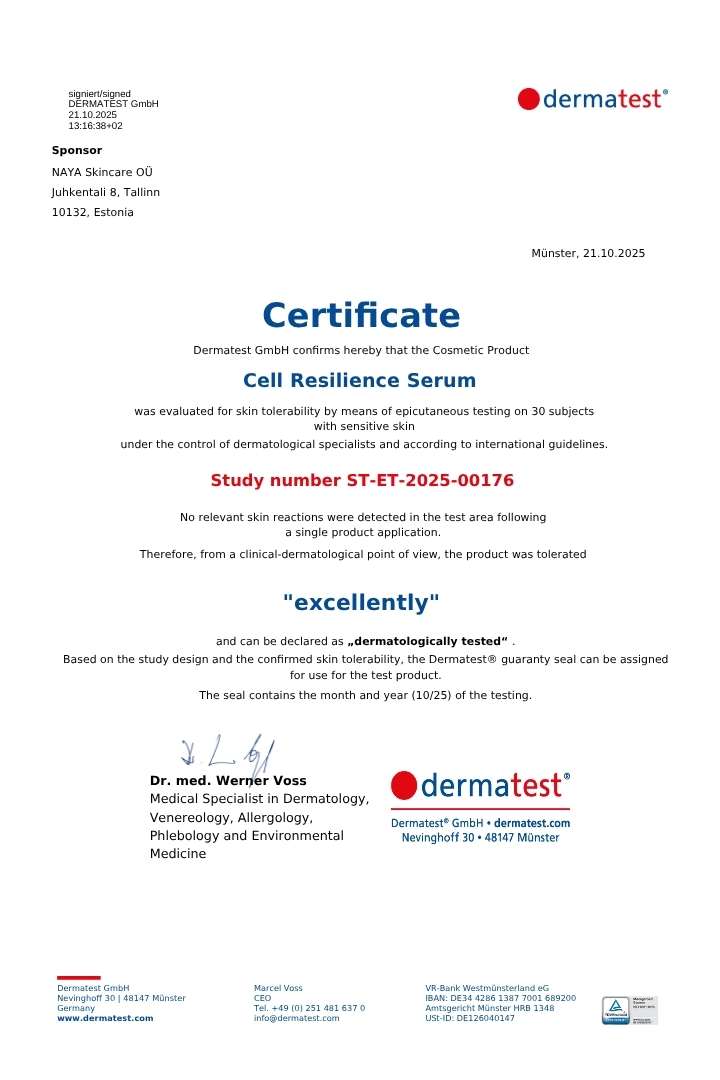 Formulated to support cellular resilience and long-term skin stability, not short-term stimulation or cosmetic quick fixes.