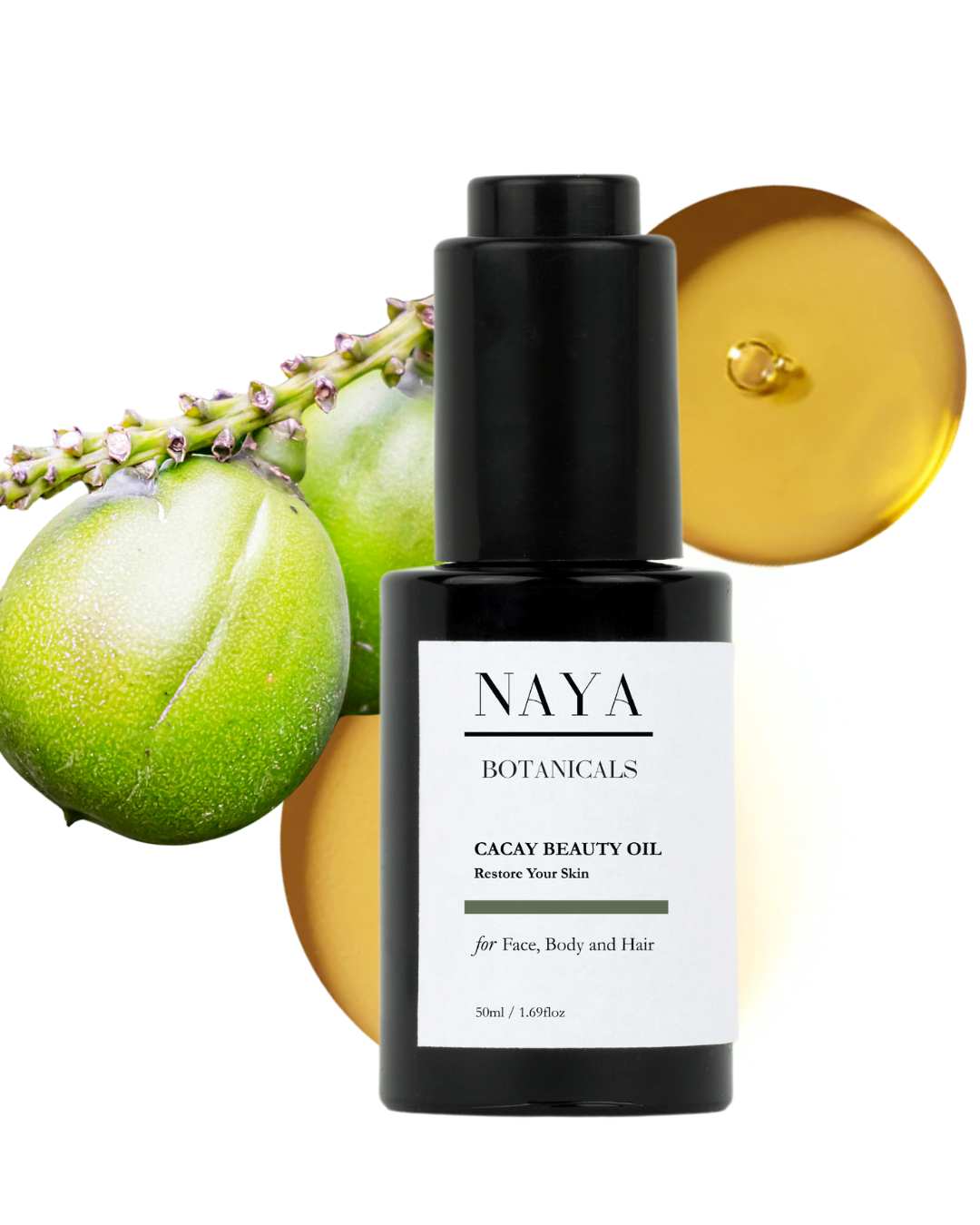 Our oils protect and nourish your skin sustainably. They are not only a true indulgence for your skin as a standalone product, but they also work wonderfully when combined with other products like our moisturisers. Even for oily or acne-prone skin, some oils are a real asset to your skincare routine. One example is our light NAYA Beauty Cacay Oil, which locks moisture into your skin and strengthens your skin barrier. Our NAYA Everyday Face Oil is the best facial oil for dry, mature, sensitive, dehydrated, and balanced skin. Thanks to its high natural Vitamin E content, it has antioxidant and skin-protecting properties. Whatever oil you choose, your face, body, and hair will appreciate the extra daily care and reward you with a strengthened barrier and a natural glow.