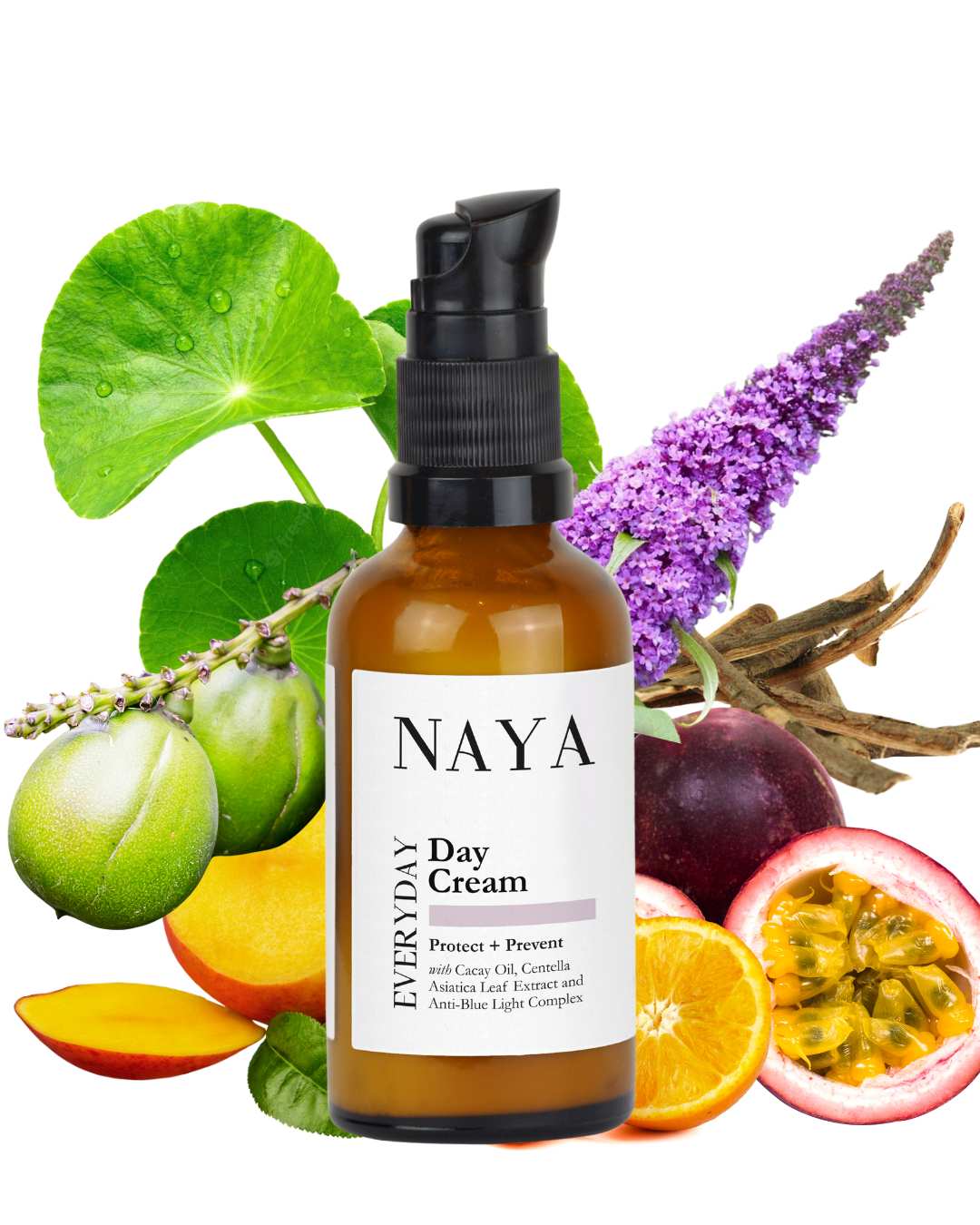NAYA's Everyday Day cream liefert eine kraftvolle Mischung an Inhaltsstoffen, um deine Haut nachhaltig zu schützen und zu hydratisieren. Ideal für den täglichen Gebrauch, bietet sie wahre Verwöhnmomente, sowohl allein als auch als Teil einer umfassenderen Hautpflegeroutine. Selbst bei öliger oder empfindlicher Haut sorgt unsere leichte Formel, reich an nährenden Botanicals, für essentielle Feuchtigkeit ohne Schwere. Unsere NAYA Everyday Tagescreme ist speziell für trockene, reife, empfindliche und dehydrierte Haut formuliert, um die Strahlkraft zu erhöhen und die Hautbarriere zu stärken. Mit ihrer hohen Konzentration natürlicher Antioxidantien schützt sie die Haut vor Umweltstress und fördert einen gesunden Glow. Unabhängig vom Hauttyp bietet diese Creme tägliche Pflege, die hilft, eine ausgewogene, gestärkte Barriere und einen strahlenden Teint zu erhalten.