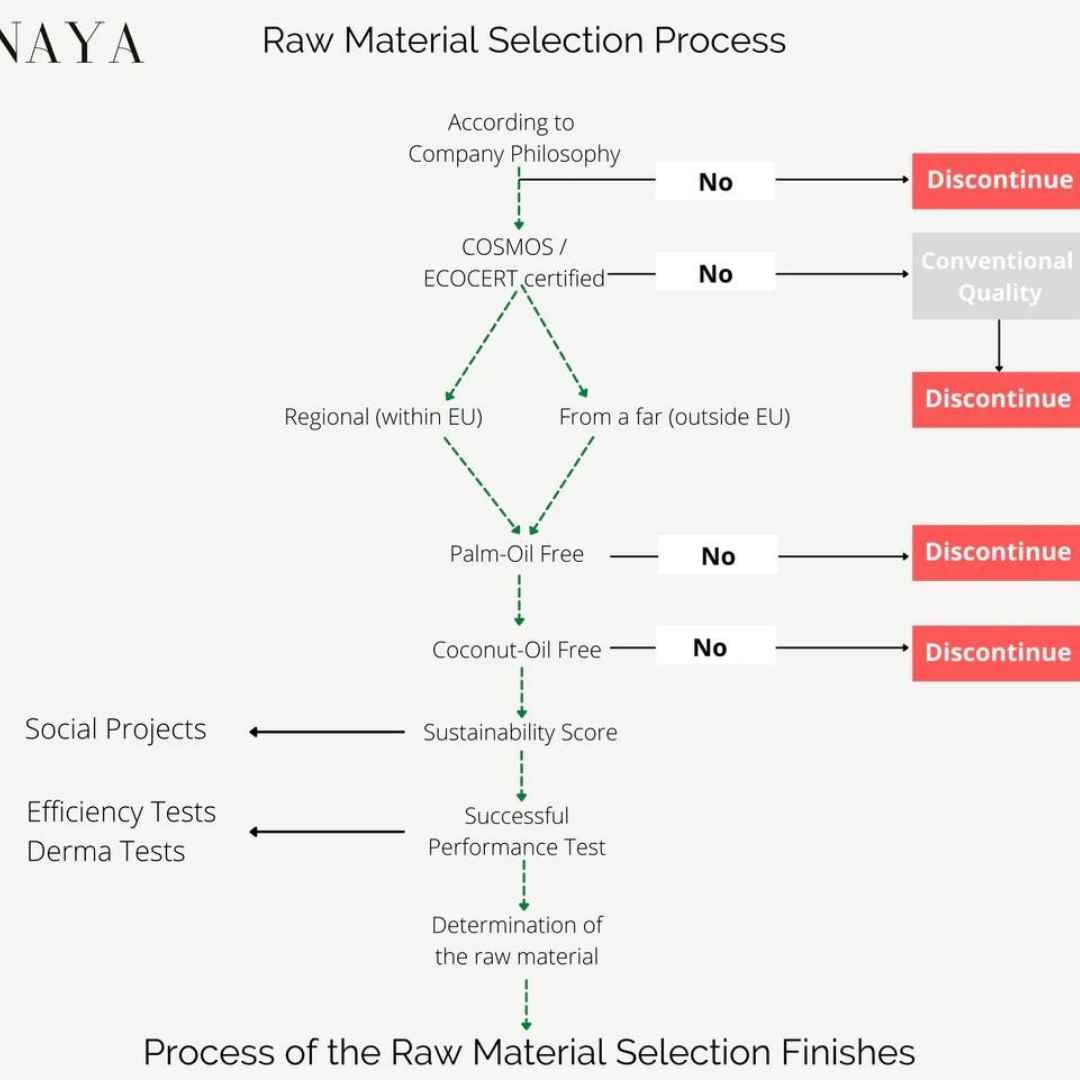 Many factors such as effectiveness, tolerance and origin play a major role for us in the selection of our ingredients. We often have to weigh up which aspects we give more weight to. That is not so easy! If a raw material does not quite meet our expectations, we will of course be honest with you. In order to shed light on this, we have clearly presented our decision-making process. The explanation of the individual steps can be found below the graphic.