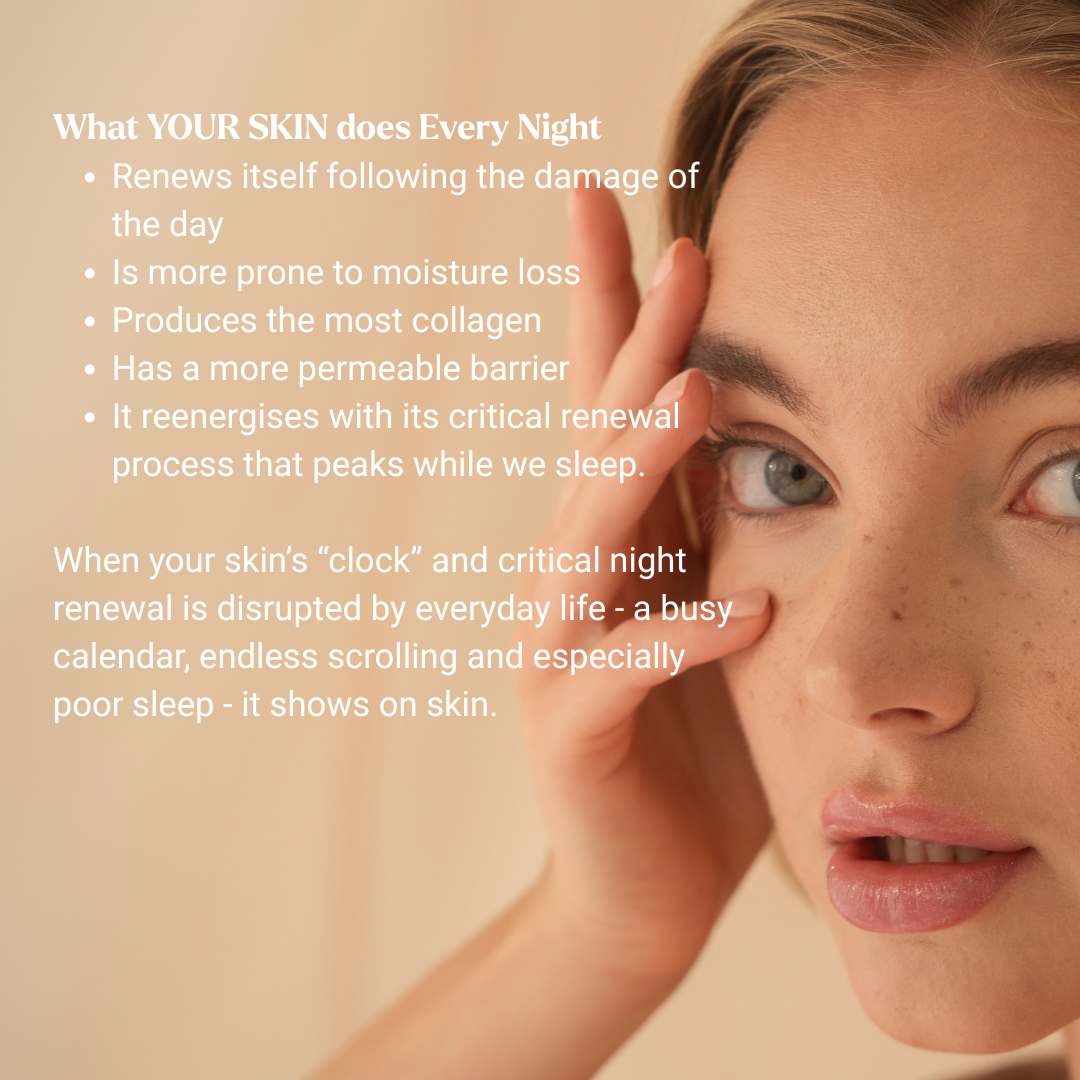 Your skin undergoes a distinct biological process from day to night. During sleep, it focuses on repairing damage and re-energizing itself. However, the skin barrier is thinner and more vulnerable to moisture loss overnight. That’s why using a dedicated regenerating nighttime skincare with targeted active ingredients like peptides is essential. Peptides support your skin’s natural repair mechanisms by stimulating collagen and elastin production, improving skin elasticity, and helping to restore a healthy, resilient skin barrier while you rest.